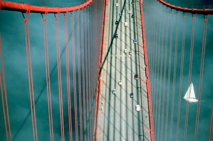 The Golden Gate Bridge in San Francisco spans nearly two miles across the strait separating San Francisco and Marin counties. This engineering marvel is suspended by two cables, each measuring 36 inches in diameter. Because the cables are wrapped in a steel jacket, they appear to be one solid strand. In reality, each cable is made up of 61 smaller cables, which in turn are made up of 452 individual strands. In total, each cable is comprised of 27,572 individual strands.